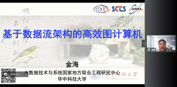 华中科技大学金海教授作了题为“基于数据流架构的高效图计算机”的报告,介绍了图计算与传统体系结构在大数据和智能时代面临的多项挑战和难题,重点汇报了团队在基于数据流的图计算机方面做出的探索与研究。
