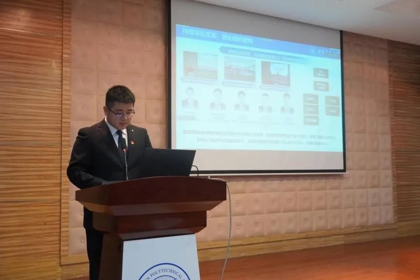 大会第一项,团委副书记徐硕进行工作汇报。徐硕汇报了团委2023年工作进展和荣誉成果,2024年将聚焦青年思想政治引领、创新创业教育、志愿服务、社会实践、校园文化活动、基层团组织建设等,主动担当、积极作为,提升学院团委工作质量。